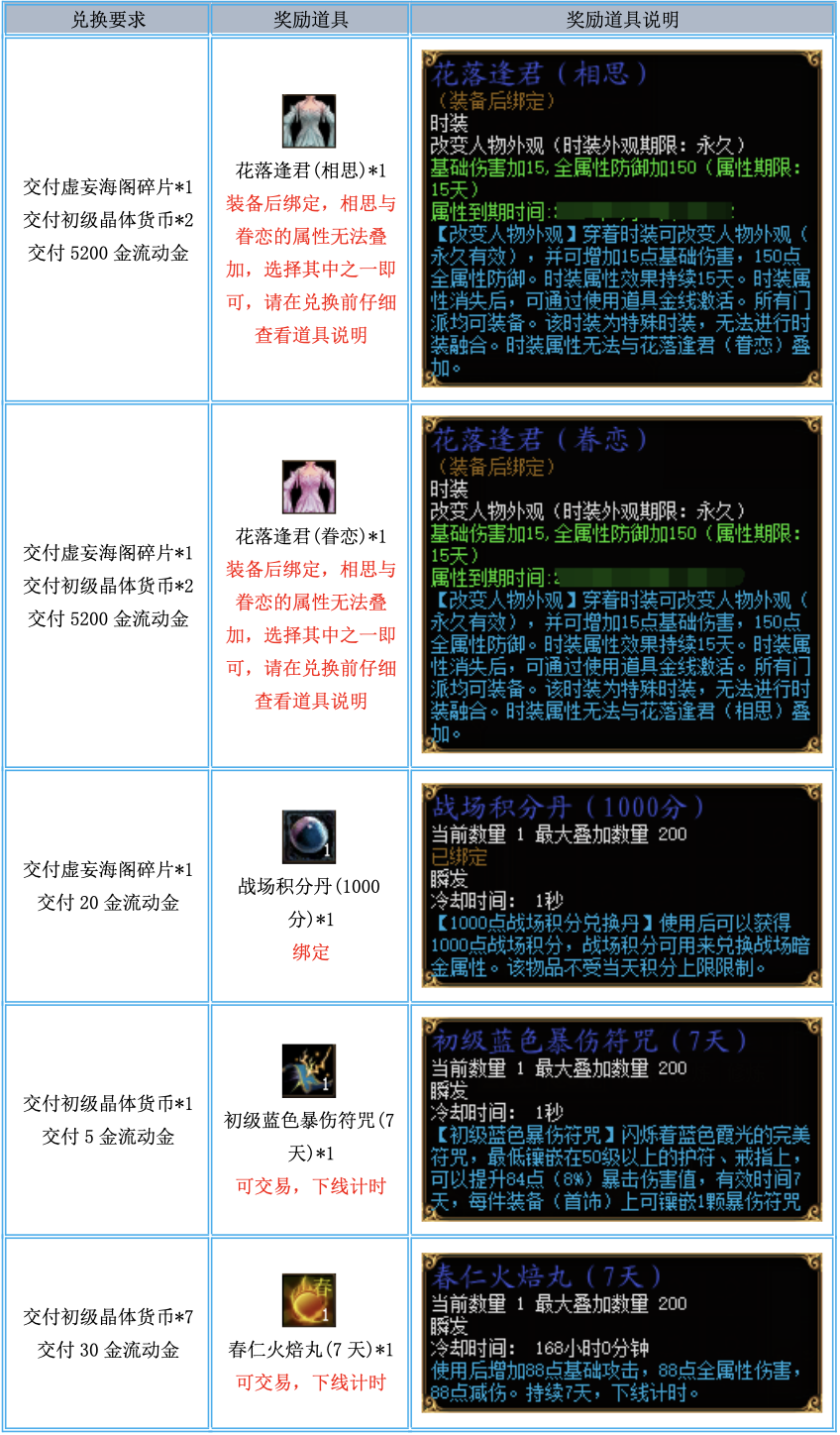 4、活动结束后所有道具将会下架,请有需要的玩家抓紧时间兑换!