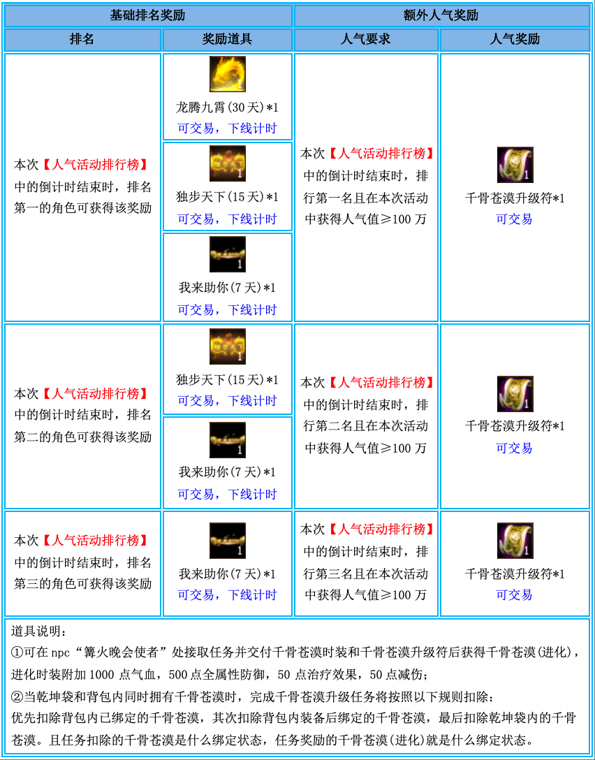 2、本活动开启前,角色已经获得的人气值不会计算在内,必须要在活动开启后获得的人气值才为有效;
